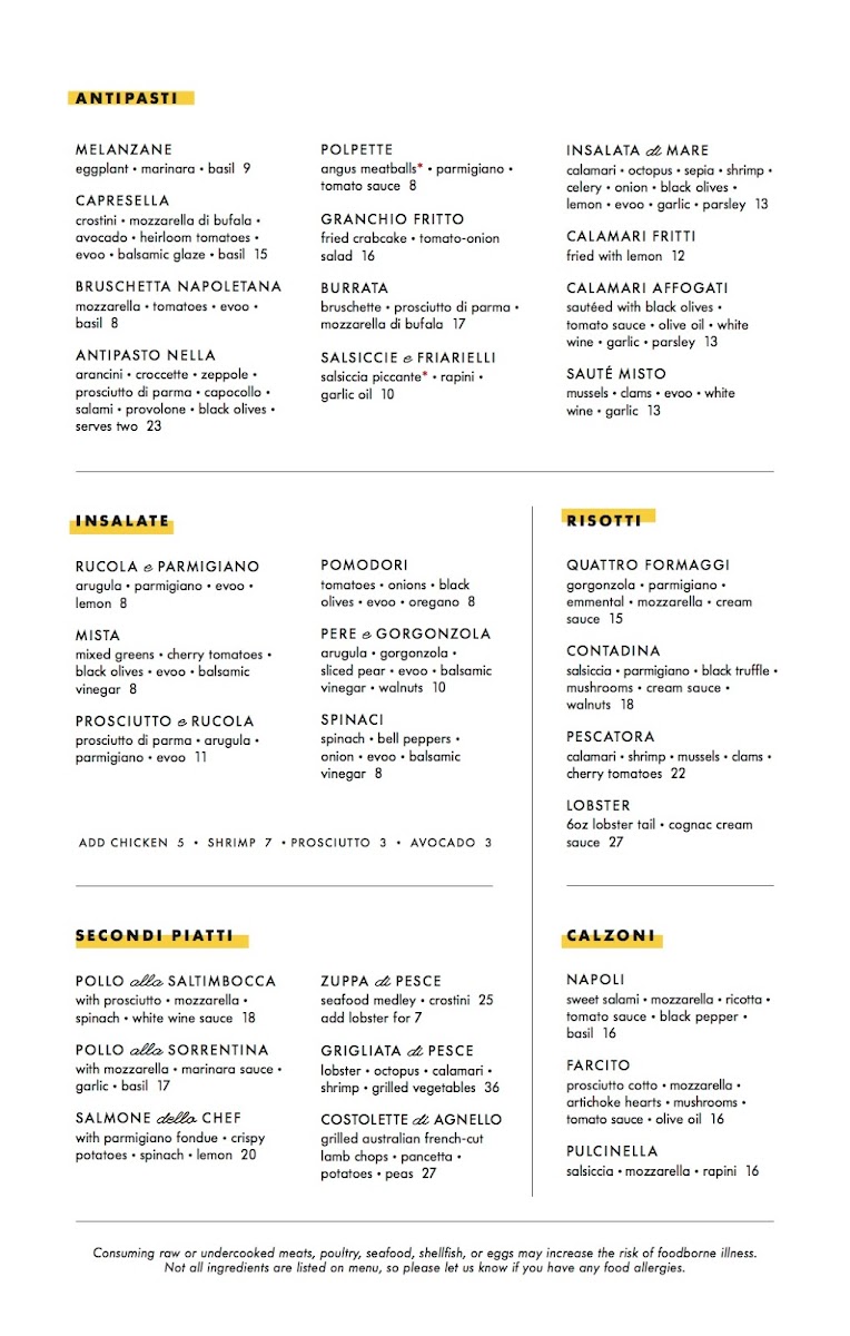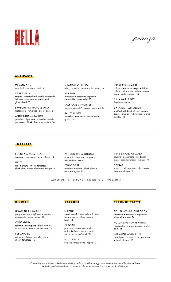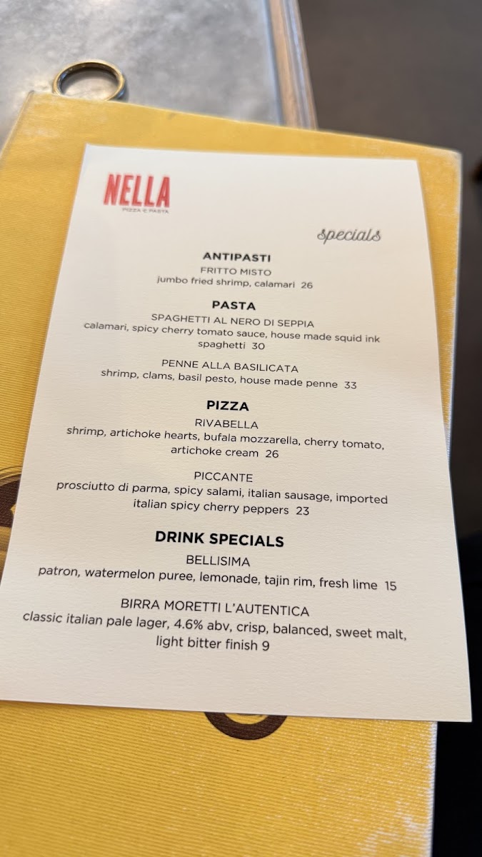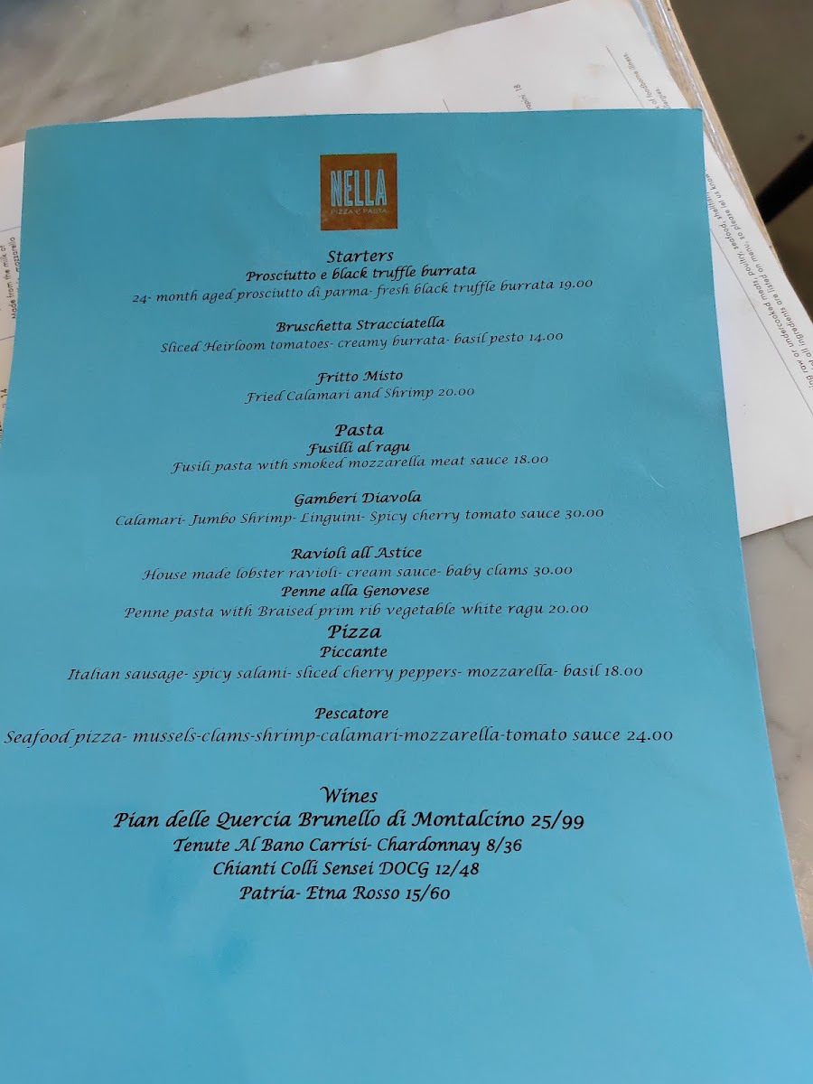 Nella Pizza E Pasta Menu